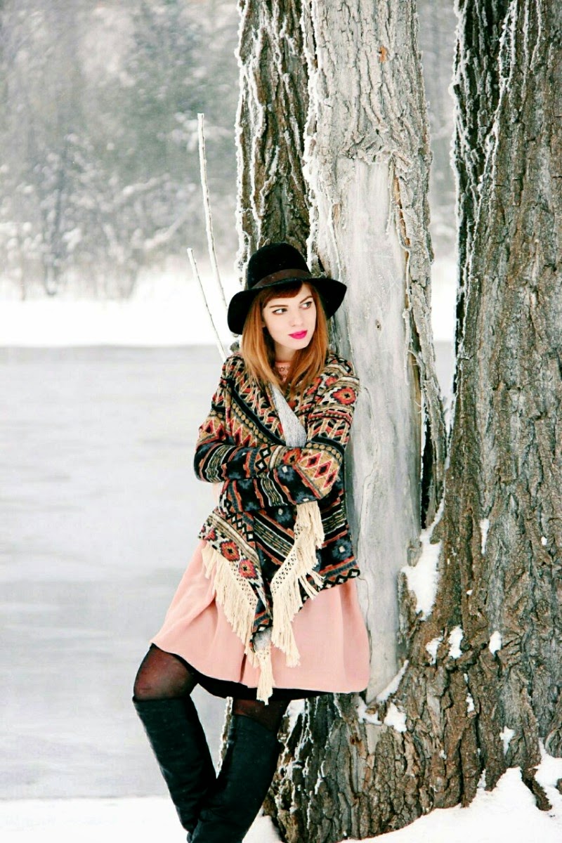 I am crazy over this Aztec Cardigan from Avenle; my closet is mostly filled with plain cardigans and holds very little fringe (which is disapointing), so I was more than happy to add such an interesting and cozy number to my collection. This aztec print is so unique, and the color combination really makes the pattern stand out. It pairs so perfectly with this dress from American Apparel, the salmon colors in both pieces work so well together! I love how it suits either dresses or pants, I can't wait to see all the ways I can play with it!
